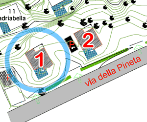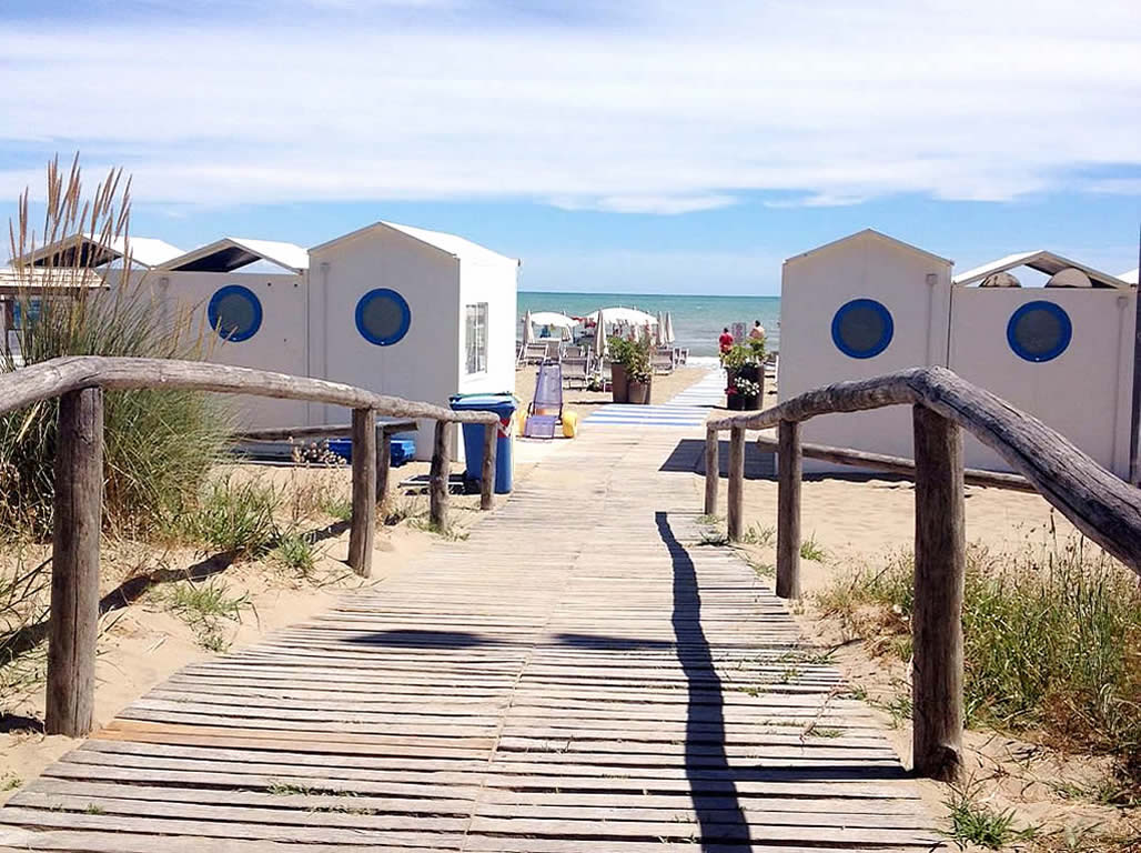 Bungalows 1, 2, 3, 4 and 5 overlook Via della Pineta, a few metres from the sea, through a shaded path among the pine trees.